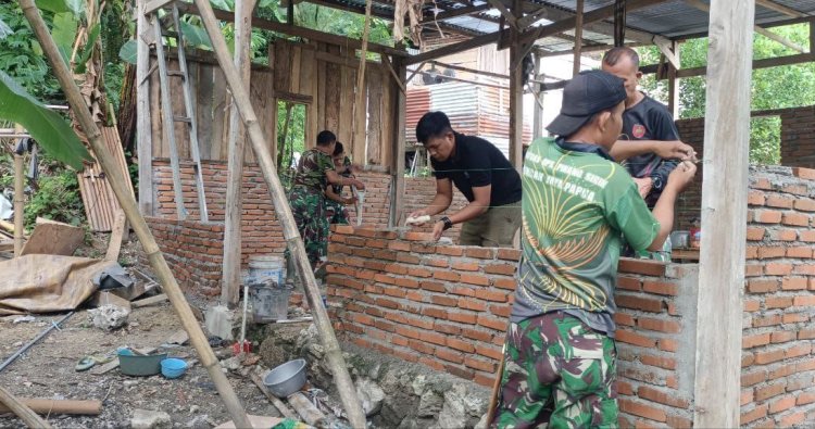Saat ini, proses pembangunan sudah memasuki tahap pemasangan batu bata. Beberapa personel TNI terlihat bekerja bersama warga sekitar, saling membantu mulai dari mengangkat material hingga memperkuat pondasi bangunan. Suasana gotong royong tampak kuat di tengah area kebun pisang yang mengelilingi lokasi rumah.