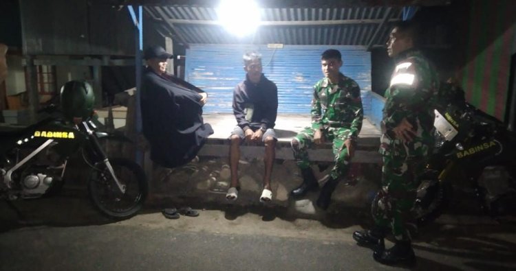 Polewali Mandar - Personel Koramil 1402-04/Tinambung melaksanakan patroli dan siskamling di Kelurahan Tinambung, Kecamatan Tinambung, Kabupaten Polewali Mandar, Senin malam (29/12/2025).