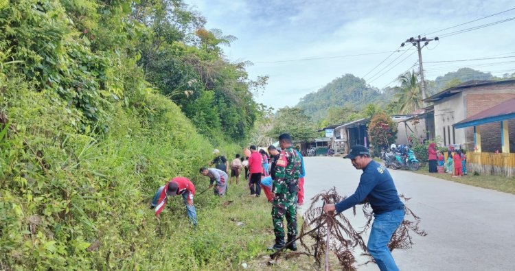 Mamasa, - Babinsa Koramil 1428-03/Mambi Koptu La Hasi bersama warga Melaksanakan pembersihan lingkungan di sepanjang jalan di Kelurahan Aralle kecamatan Aralle kabupaten mamasa, Jumat (13/02/2026)