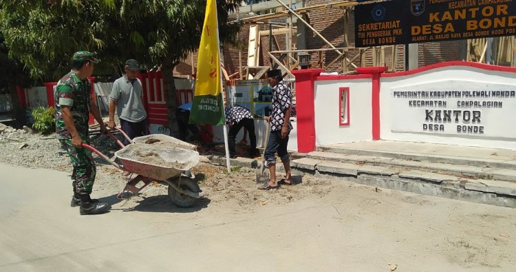 Polewali Mandar – Babinsa Koramil 1402-03/Campalagian bersama masyarakat melaksanakan kerja bakti pembersihan lingkungan dan saluran drainase di Kantor Desa Bonde, Kecamatan Campalagian, Kabupaten Polewali Mandar, Senin (12/1/2026).