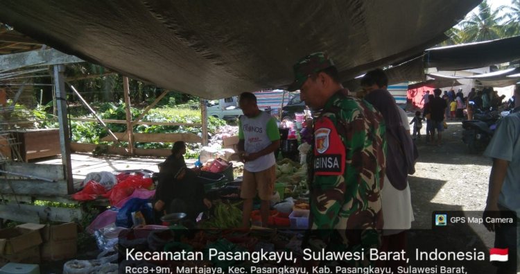Pasangkayu – Komitmen menjaga stabilitas harga bahan pokok serta memastikan keamanan dan kenyamanan masyarakat terus ditunjukkan aparat kewilayahan. Pada Minggu, 15 Februari 2026, sekitar pukul 09.10 Wita, Babinsa Kelurahan Martajaya Koramil 1427-01/Pasangkayu, Sertu Hamzah, melaksanakan pemantauan keamanan pasar sekaligus monitoring harga dan ketersediaan sembako di Pasar Tradisional Martajaya, Kecamatan Pasangkayu, Kabupaten Pasangkayu. Kegiatan tersebut turut dihadiri Kepala Pasar Martajaya, Mappa, sebagai bentuk sinergitas antara aparat teritorial dan pengelola pasar dalam menjaga stabilitas ekonomi masyarakat.