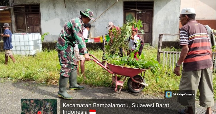 Pasangkayu — Dalam upaya menciptakan lingkungan yang bersih, sehat, dan bebas dari potensi banjir di musim penghujan, Babinsa Desa Pangiang, Koramil 1427-02/Randangan, Sertu Amiruddin, bersama warga Dusun Salule, Desa Pangiang, Kecamatan Bambalamotu, Kabupaten Pasangkayu, melaksanakan kegiatan kerja bakti pembersihan lingkungan, Selasa (11/11/2025).