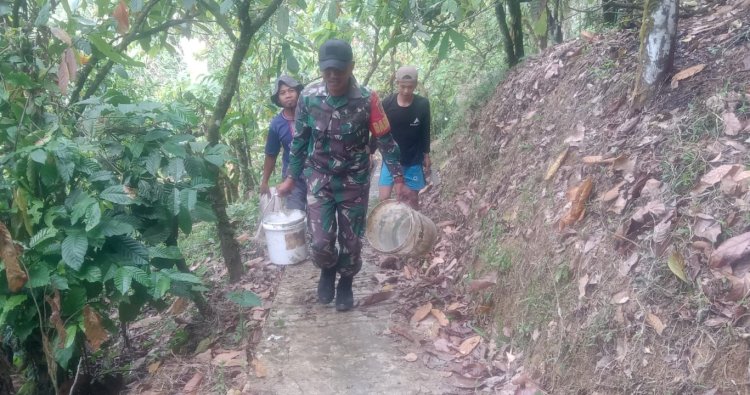 Mamasa, - Dalam upaya mengatasi kesulitan warga desa binaannya, Babinsa Koramil 1428-03/Mambi turun langsung untuk membantu masyarakat dalam perbaikan jalan tani yang bertempat di Dusun Pebanuaan Desa Salukadi Kecamatan Bambang Kabupaten Mamasa, Minggu (25/01/2026)