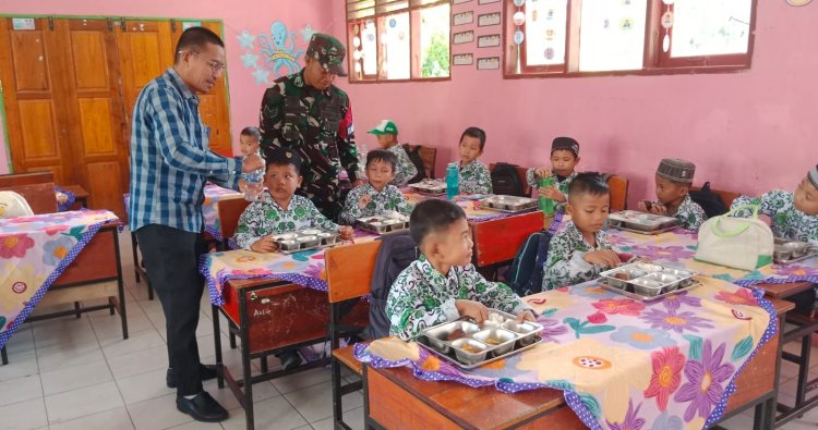 Babinsa Koramil 1427-01/Pasangkayu Dampingi SPPG Yayasan Wakaf As'Adiyah Beri Makan Bergizi kepada Siswa