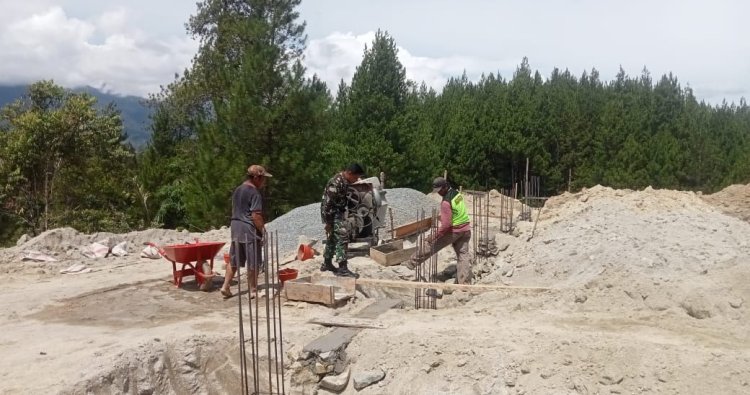 Selama kegiatan, Sertu Akbar Patona memastikan proses pembangunan berjalan sesuai rencana serta memperhatikan aspek keselamatan para pekerja di lokasi.