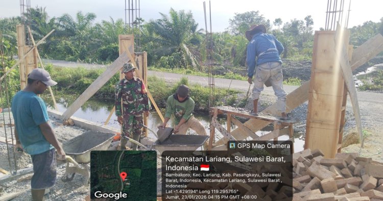Pasangkayu — Kepemimpinan teritorial TNI AD kembali ditunjukkan melalui keterlibatan langsung Bintara Pembina Desa (Babinsa) dalam mengawal pembangunan di wilayah binaan. Pada Jumat, 23 Januari 2026, Babinsa Desa Bambakoro, Serma Amir Machmud, melaksanakan pengawasan pembangunan KDKMP yang berlokasi di Dusun Salupontu, Desa Bambakoro, Kecamatan Lariang, Kabupaten Pasangkayu. Kegiatan yang dimulai pukul 09.00 Wita tersebut menjadi bukti nyata peran aktif TNI dalam memastikan program pembangunan berjalan sesuai rencana, tepat mutu, dan tepat sasaran.