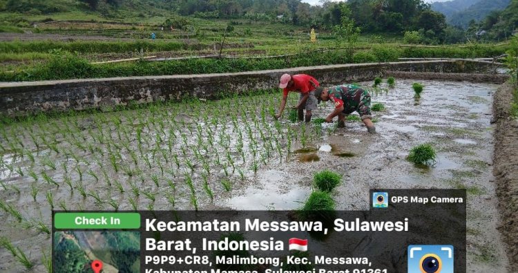 Mamasa, - Babinsa Koramil 1428-02/Sumarorong Sertu Paulus membantu masyarakat menanam padi di sawah yang bertempat di Dusun salinduk Desa Malimbong Kecamatan Messawa Kabupaten Mamasa, Selasa (25/11/2025)