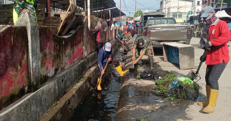 Polewali Mandar – Sejumlah prajurit TNI dari Koramil 1402-02/Wonomulyo bersama petugas Dinas Lingkungan Hidup dan Kebersihan (DLHK), aparat kelurahan, serta masyarakat menggelar kerja bakti pembersihan lingkungan dan saluran drainase di Kelurahan Sidodadi, Kecamatan Wonomulyo, Kabupaten Polewali Mandar, Senin (15/12/2025).