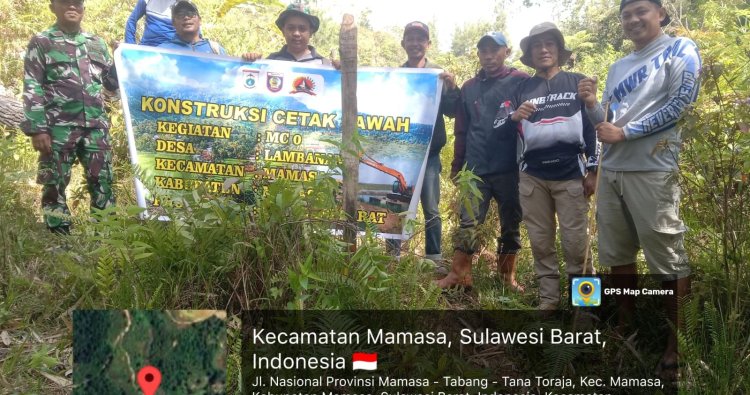 Mamasa, - Babinsa Koramil 1428-91/Mamasa Sertu Jhonny Gema melaksanakan pendampingan kegiatan cetak sawah yang berlokasi di Desa Lambanan Kecamatan Mamasa Kabupaten Mamasa Kegiatan ini merupakan bagian dari upaya mendukung program ketahanan pangan di wilayah binaan, Sabtu (22/11/2025).