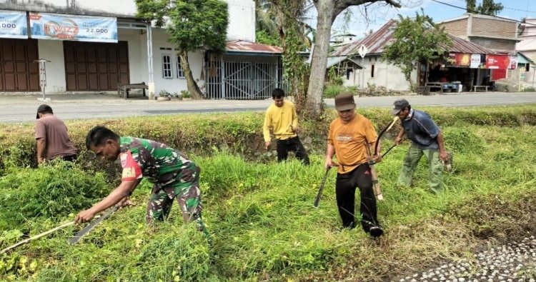 Personel TNI dan Warga Gelar Jum'at Bersih di Kelurahan Sulewatang
