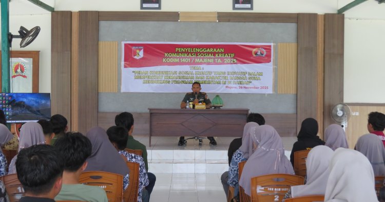Majene – Sebagai sarana mempererat silaturahmi sekaligus meningkatkan kemanunggalan TNI dengan seluruh komponen bangsa, Kodim 1401/Majene menggelar kegiatan Komunikasi Sosial (Komsos) Kreatif Tahun 2025 di Aula Kodim 1401/Majene, Kelurahan Lembang, Kecamatan Banggae Timur, Rabu (26/11/2025).