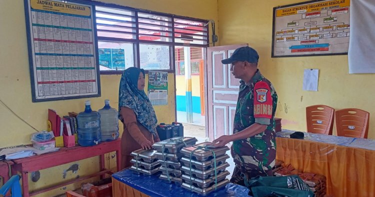 Mamasa, - Dalam upaya mendukung program Pemerintah, dalam hal ini program Makan Bergizi Gratis (MBG) untuk meningkatkan gizi anak sekolah, Babinsa Koramil 1428-03/Mambi melaksanakan pendampingan kegiatan pembagian makanan bergizi di Desa Rantebulahan Kecamatan Mambi Kabupaten Mamasa, Rabu (04/01/2026)
