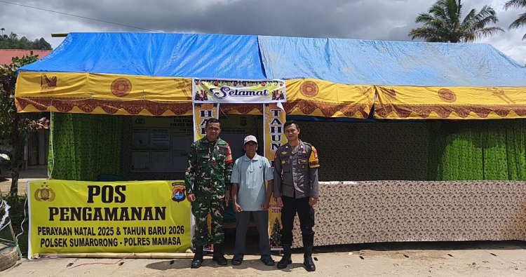 Mamasa, - Dalam rangka menjaga keamanan dan kelancaran perayaan Natal 2025 dan Tahun Baru 2026 (Nataru), Babinsa Koramil 1428-02/Sumarorong Sertu Irfan melaksanakan kegiatan pengamanan di Pos Pengamanan Nataru yang berlokasi di Kelurahan Messawa Kecamatan Messawa Kabupaten Mamasa, 25/12/2025