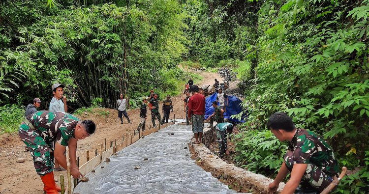 Ia menjelaskan, rabat beton sepanjang 500 meter dikerjakan secara bertahap dengan memulai dari ujung jalur untuk memudahkan pelansiran material ke titik sasaran. Medan yang cukup menantang menjadi perhatian khusus dalam pengaturan teknis pekerjaan di lapangan.