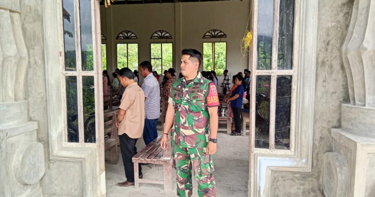 Mamasa, - Guna memberikan rasa aman dan nyaman kepada umat Nasrani saat Ibadah hari Minggu, Kopda Sugianto Babinsa Koramil 1428-03/Mambi melaksanakan pengamanan di Gereja Mario Timoro Desa Timoro Kecamatan Tabulahan Kabupaten Mamasa. Minggu (01/06/2/2026).